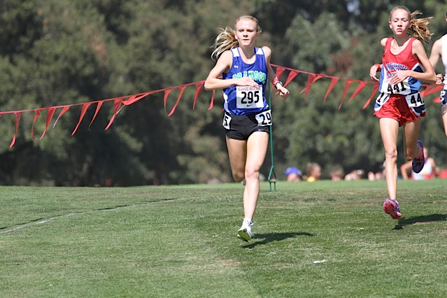 From left to right. Branson’s Anna Harleen 12th in Girls Seeded Race, Branson’s Julia Maxwell 4th in Girls Seeded Race, Marin Academy’s Trevor Reinhart (#1188) 1st in Boys Div 5 race. Teammate James Kinney (1186) placed 2nd in the race.
