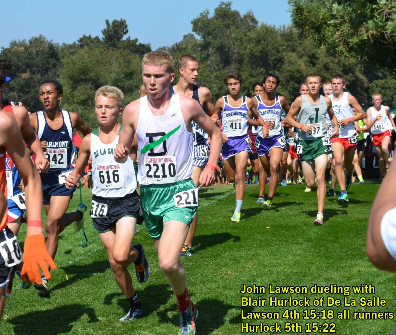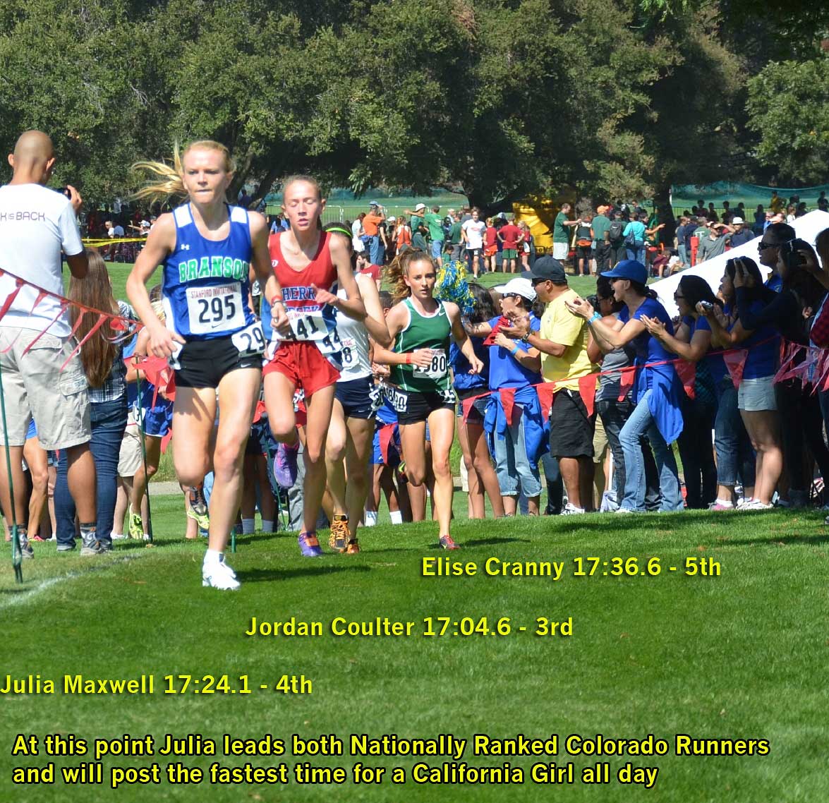 From left to right. Branson’s Anna Harleen 12th in Girls Seeded Race, Branson’s Julia Maxwell 4th in Girls Seeded Race, Marin Academy’s Trevor Reinhart (#1188) 1st in Boys Div 5 race. Teammate James Kinney (1186) placed 2nd in the race.