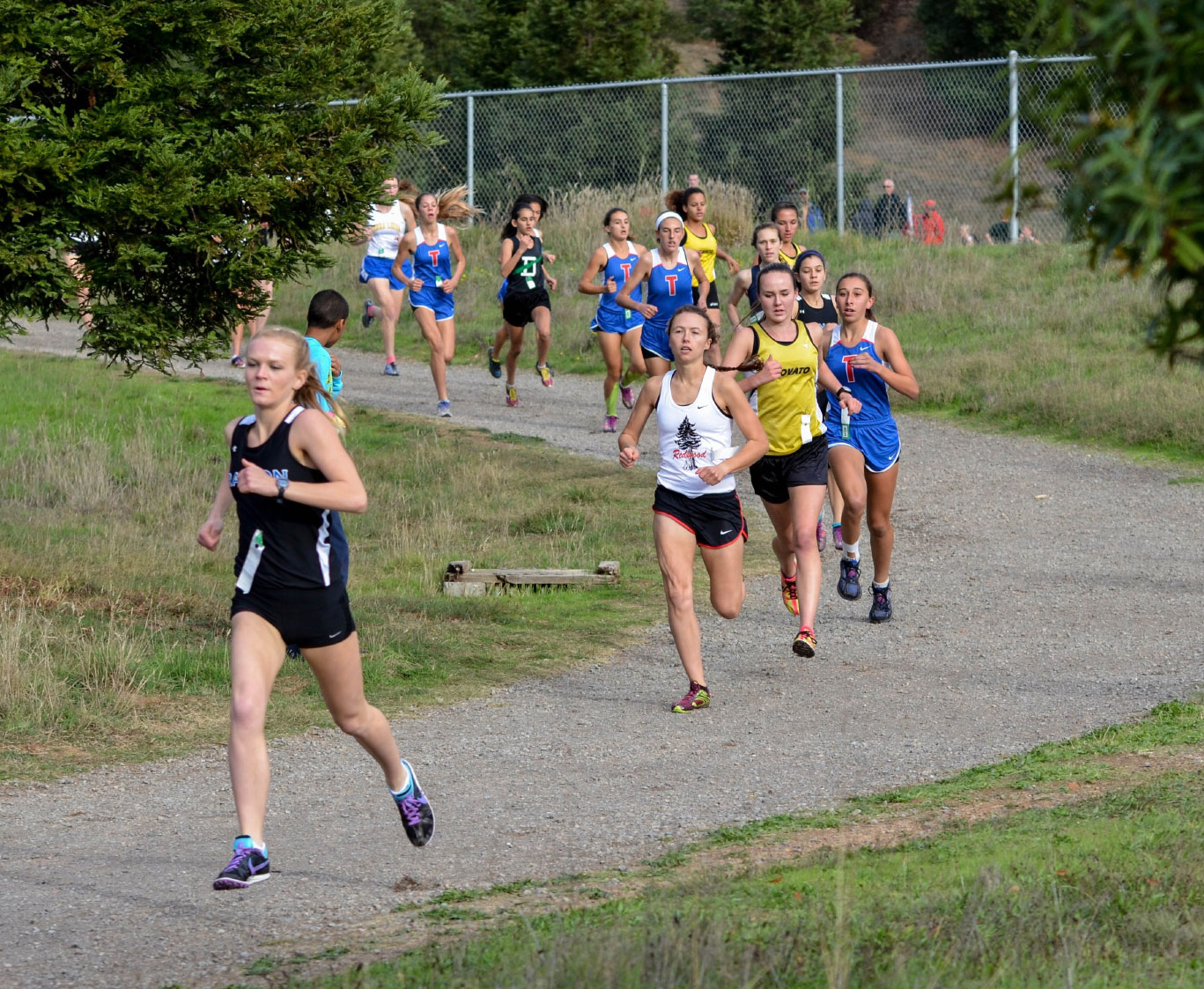 Branson’s Julia Maxwell and Anna Harleen finished 1-2 in the Girls’ race.Megan Bordes of Redwood finished 3rd. Bella Amyx of Tam was 4th and Isabel Moon of Novato finished 5th. Drake’s John Lawson and Clayton Hutchins finished 1-2 in the Boys’ race. Redwood’s Fred Huxhum finished 3rd. Redwood won the Boys and Girls Team Titles.