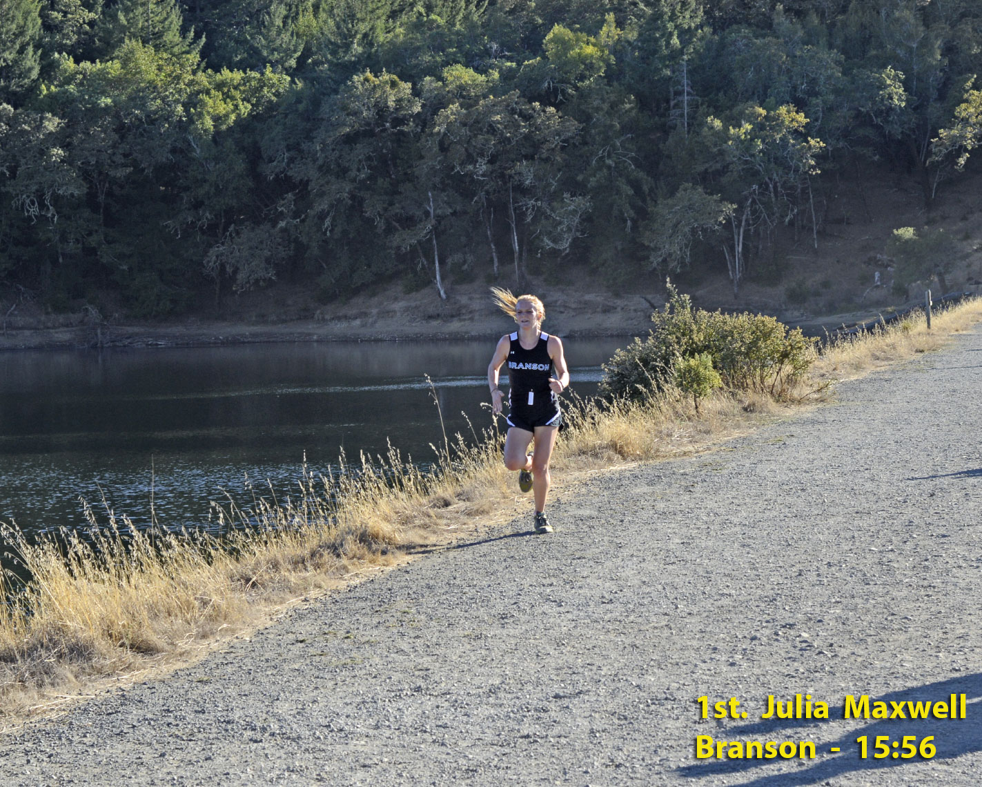 Zach Bibeault of TL and Julia Maxwell of Branson shown heading to the finish.