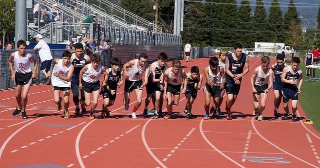 Start of the Varsity Boys 1600 (Photo by Tom Benjamin)