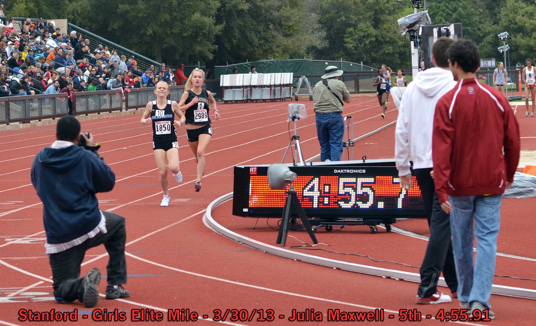 Julia Maxwell of Branson has returned from a spring injury to record the fastest time of the day at the Stinson Beach Relays. On Thursday she competed for the final time on Branson’s home course at Bon Tempe and won the race. At this meet the top 5 finishers were 2013 MCAL 1st Team Finishers and 7th and 8th place were 2013 MCAL 2nd Team Finishers. There were 5 RanMarin Summer runners placing in the top 8. (Photo from 2012 Footlocker West)