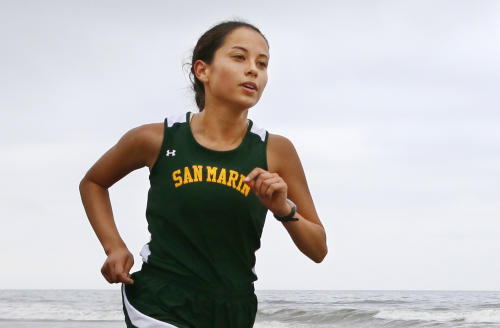 Michele Bollinger of San Marin has returned to cross country and an injury in 2012. Michele led the San Marin team at Stinson and ran the 20th fastest time. Michele competed at the Viking Opener and finished 24th. At the league meet at O’Hair Park Michele placed 6th to lead her team. (Photo from IJ)